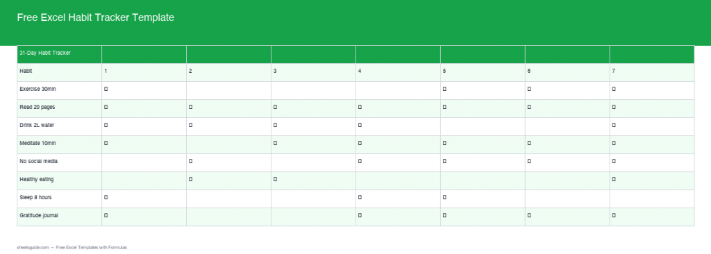 Download our Free Excel Habit Tracker Template with real formulas for automated tracking and analysis. Stay motivated and achieve your goals!