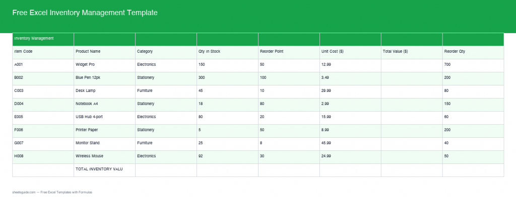 Free Excel Inventory Template with real formulas, smart alerts, and auto-calculations for excellent inventory management. Download now!