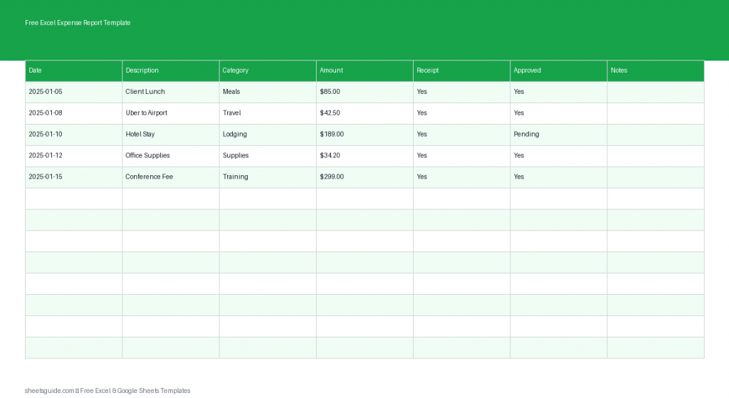 Descarga esta plantilla gratuita de Excel para presentar y rastrear gastos empresariales con totales automáticos y desgloses por categoría.