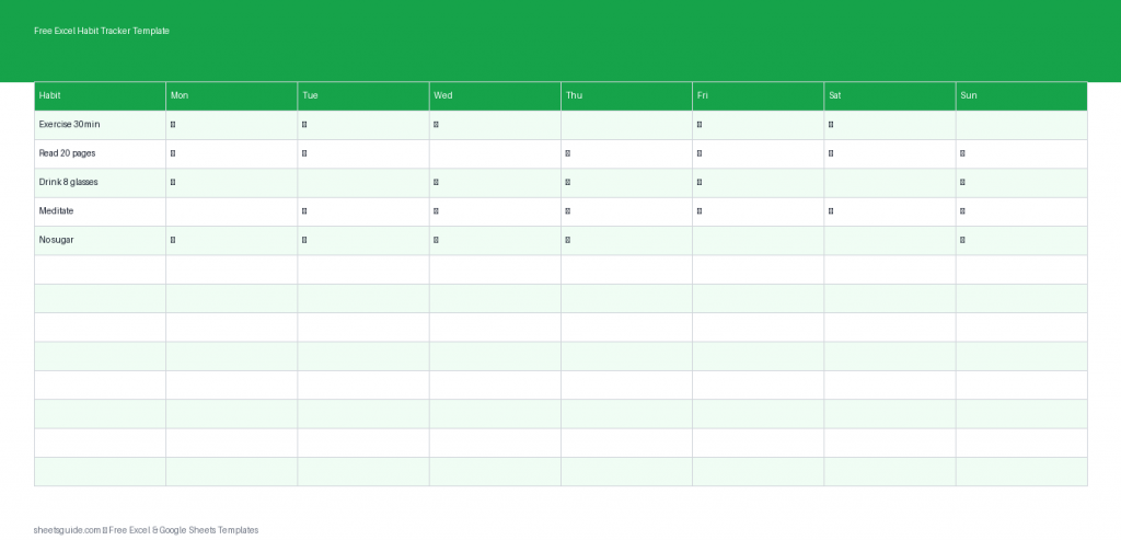 Descarga una plantilla gratuita de Excel para seguir hábitos, monitorear rachas y visualizar el progreso semanal. Funciona en Excel y Google Sheets.