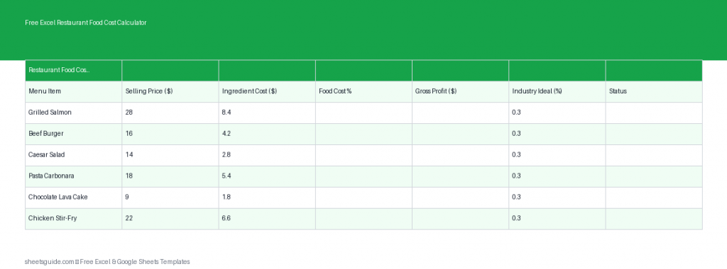 The Free Excel Restaurant Food Cost Calculator is built with essential columns that give you immediate insights into your menu: