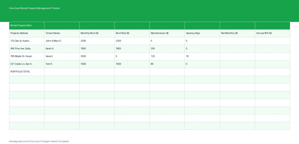 Excel向けに設計され、Googleスプレッドシートとも完全互換性のあるこのテンプレートは、大家や物件管理者が財務および運営状況を明確かつ実用的に把握するのに役立ちます。